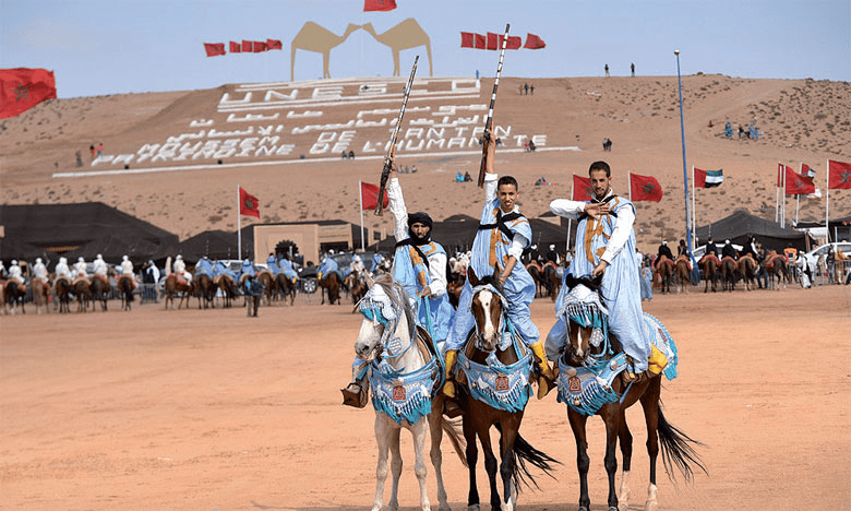 Este festival declarado Patrimonio Cultural Inmaterial de la Humanidad por la UNESCO celebra la cultura nómada del Sahara marroquí. Durante varios días, tribus bereberes, árabes y saharauis se reúnen para compartir música, danza, carreras de camellos, mercados tradicionales y rituales ancestrales.