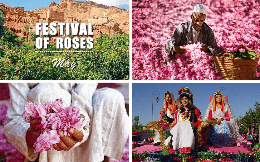 En la región de Kelaa M’Gouna, conocida como la “Ciudad de las Rosas”, este festival celebra la cosecha de las rosas damascenas que se utilizan para hacer perfumes, aceites y productos cosméticos. La fiesta incluye desfiles, bailes tradicionales y concursos de belleza.